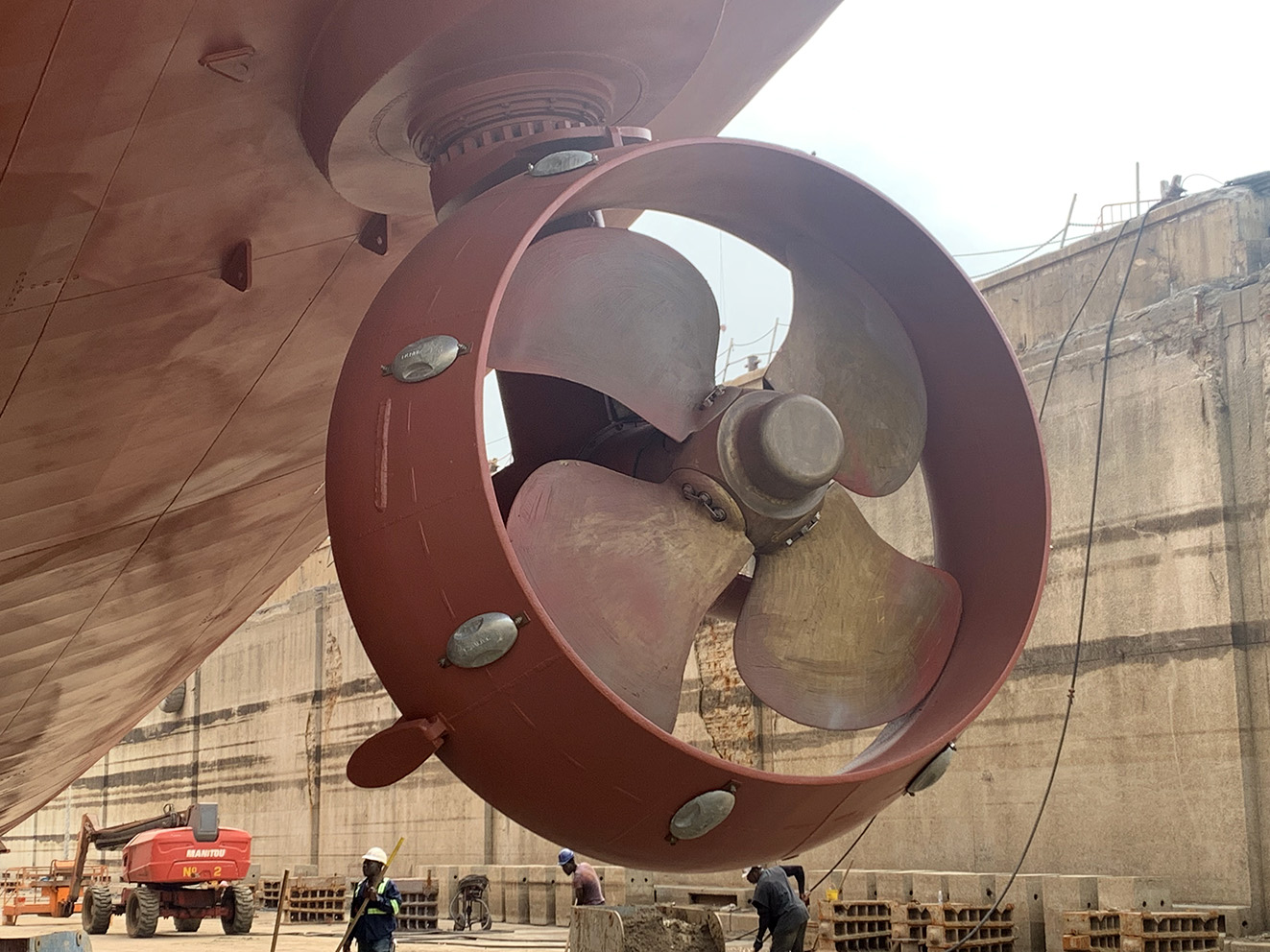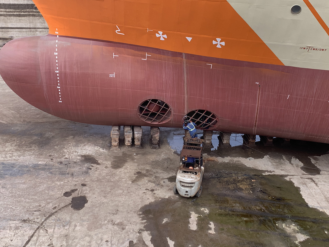 This project encompassed a broad scope of technical and structural works, including: Sea Chest and Gratings, Sewage Collation and Disposal System, Reconditioning of Bow Thruster Blades, Hull Fenders Frames Renewal, Surface Preparation and Preservation, Sea Suction and overboard Valves Servicing